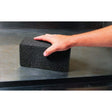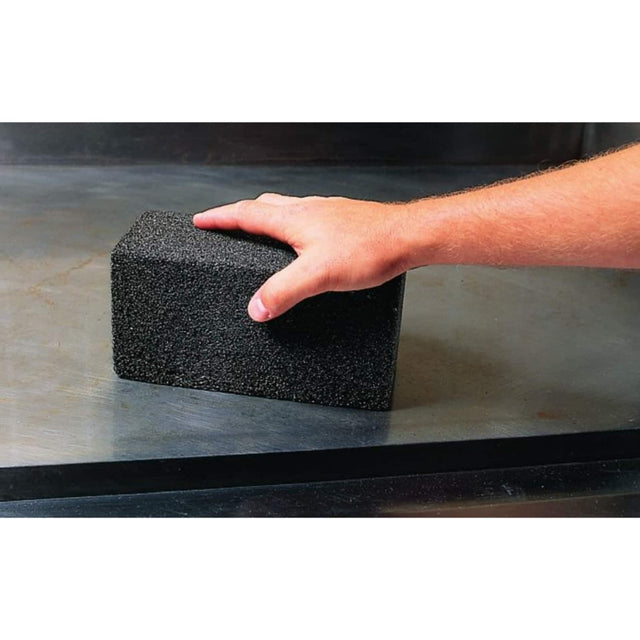 Made of foam glass, this brick can be used safely on hot grill tops without scratching or lifting the grill cure.
