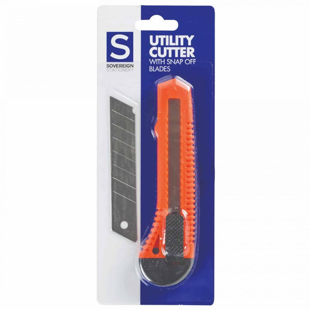 Utility cutting knife with snap off blades
