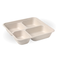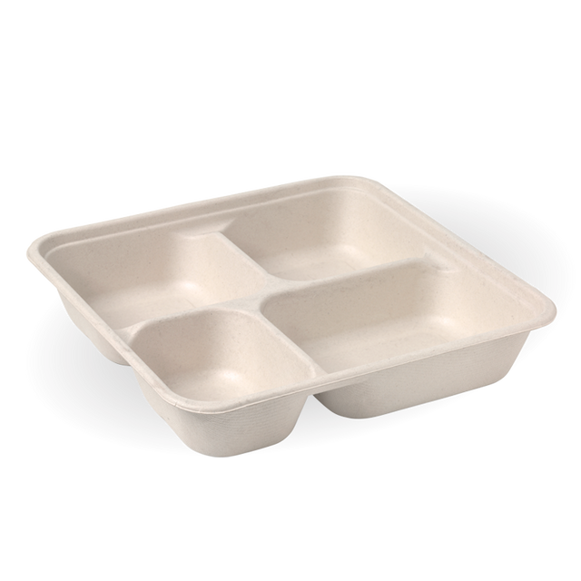 Our plastic-free sugarcane compartment containers are made from rapidly renewable sugarcane pulp, a by-product of the sugar refining industry, and mixed with other plant fibres. This 4-compartment container base is made with no added PFAS and is pending home compostable to AS5810 standards.