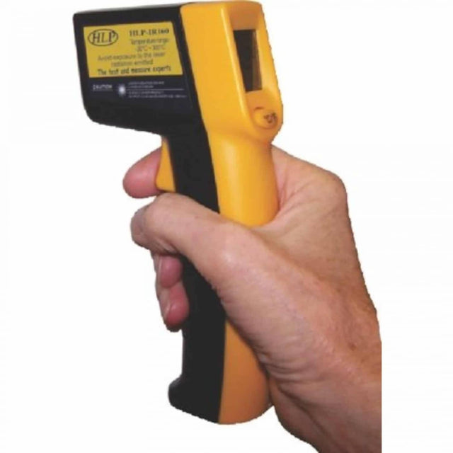 Industrial grade digital temperature gun (infrared thermometer) with laser pointer for contact point accuracy. The thermometer features a 'gun style' handgrip for easy use (with trigger operation) and includes a bright laser pointer for accurate aiming.