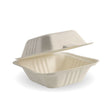 Our plastic-free clamshells are made from rapidly renewable sugarcane pulp, a by-product of the sugar refining industry. Our 6x6x3 natural bagasse clamshell containers are an eco-friendly alternative to plastic takeaway containers.