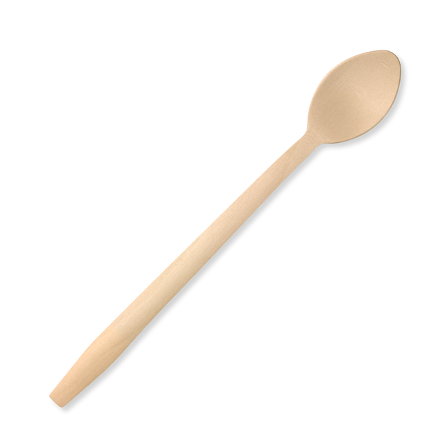 Our 20cm tall wood teaspoon is made from sustainably sourced FSC™ 100% certified birchwood. Perfect for stirring hot drinks, smoothies and milkshakes in tall cups. This spoon is home compostable.