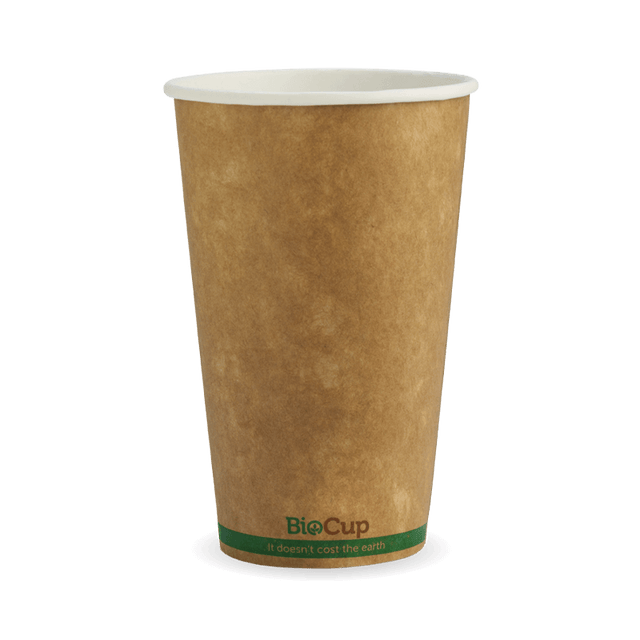 Paper BioCups are lined with a water-based aqueous coating and certified home compostable (AS5810). This 16oz Green Stripe BioCup is printed kraft-look. This takeaway cup fits our large lids